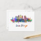San Diego V2 Skyline in Aquarellfarbe Postkarte