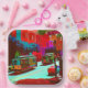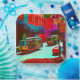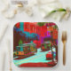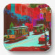 Farbenfrohe Grafik einer Straßenszene in San Francisco mit Seilbahnen...