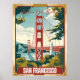 Kommen Sie zurück in die Vergangenheit und erleben Sie die Großartigkeit von San Francisco in diesem Retro-Reiseplakat! Die goldene Gate Bridge, die im warmen Glanz vergangener Zeiten gebadet wurde, ist ein idealer Ausgangspunkt, um die Stadt zu erkunden. Lass dieses Plakat, das dich in eine vergangene Zeit der lebhaften Geschichte San Franciscos führt und deine Wanderlust nach der Stadt durch die Bucht entzündet.
