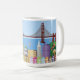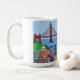 San Francisco Stadt-Sehenswürdigkeiten mit Golden Gate Brücke und Segelboot-bunten Illustration und der zeichnen Tasse