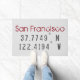 Längen- und Breitengradkoordinaten von San Francisco California im modernen urbanen Schriftart