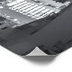 Dieses Schwarz-Weiß-Foto erfasst nachts die Skyline von San Francisco. Die ikonische Transamerica Pyramide steht unter anderen beleuchteten Wolkenkratzern. Die Lichter der Stadt reflektieren das Wasser im Hintergrund und erzeugen einen schimmernden Effekt. Der Himmel ist voll von Wolken, die der Szene Tiefe verleihen. Die Stimmung ist insgesamt ruhig und urbane.