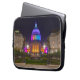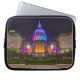 Ein nächtliches Foto zeigt das San Francisco Rathaus, das in lebhaften Regenbogenfarben badet und Inklusivität und Stolz symbolisiert. Die ikonische Kuppel, eine herausragende architektonische Erscheinung, wird in einer weichen lila Farbe beleuchtet. Die Fassade des Gebäude ist farbenfroh gestaltet und bietet eine beeindruckende visuelle Darstellung.