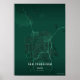 A stunning art print of San Francisco Map rendered in a vibrant emerald city color palette. Every street, highway, and waterway is mapped in fine detail against a rich emerald background. Perfect as a statement piece for your home, office, or as a gift for any San Franciscan.