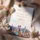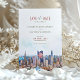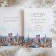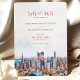 Mit dieser "Save the Date"-Einladung mit einer Aquarelldarstellung der Skyline der Stadt können Sie Ihre Hochzeit im typischen San Francisco Stil verkünden. Dieses Design zeigt berühmte Sehenswürdigkeiten wie die Transamerica Pyramide und die amerikanische Fahne, die stolz über das Stadtbild schwindet und den modernen Charme San Franciscos einfängt. Mit Blautönen, Grau und Touchs in Rot ist diese Einladung perfekt für eine Hochzeit in Urlaubsort oder ein Städtefest. Set den Ton für ein elegantes und unvergessliches Ereignis im Herzen der beliebten Bay Area in Kalifornien.