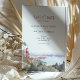 Feiern Sie Ihre kommenden Nuptials mit der Eleganz der Skyline von San Francisco. Diese wunderschön gestaltete Save the Date-Einladung besticht durch eine delikate Aquarellmalerei, die die berühmte Golden Gate Bridge, das Set vor dem Hintergrund der berühmten Hügel und die ruhige Bucht der Stadt darstellt. Die sanfte Farbpalette aus Cerulea, Rosa und Sand-Beige schafft ein romantisches und ruhiges Ambiente, das perfekt für die Ankündigung Ihres besonderen Tages geeignet ist. Die sanften Pinselstriche wecken ein Gefühl der Träumerei, während die ausgeklügelte Typografie elegant die Details Ihres Events teilt. Ideal für Paare, die den Charme und die lebendige Kultur San Franciscos schätzen, ist diese Einladung sicher, den Ton für eine unvergessliche Hochzeit Set.