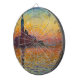 Dieses Design besticht durch ein berühmtes impressionistisches Gemälde von Claude Monet (1840-1926). Es ist Teil einer Reihe von Aussichten auf die Klosterinsel San Giorgio Maggiore (im Venezianischen Dialekt, San Zorzi Mazor): seine Palladianische Kirche ist eine wichtige Sehenswürdigkeit von Venedig. Monet fühlte, Venedig sei eine Stadt "zu schön, um gemalt zu werden", aber hier hat er elegant die Schönheit eines farbenfrohen Sonnenuntergangs in verschiedenen Tönen von Rot, Orange, Gelb und Blau eingefangen. Das ursprüngliche Gemälde wurde 1908 fertig gestellt und befindet sich derzeit im Nationalmuseum Cardiff, Wales.