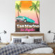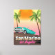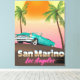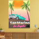San Marino Los Angeles Vintages Reiseplakat drucken. Ein wunderschönes Reiseposter eines klassischen amerikanischen Autos, das im Abend bei Sonnenuntergang in der Dämmerung fährt.