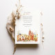 Mit dieser bezaubernden Wasserfarbenhochzeitseinladung laden Sie Ihre Gäste zu einem zauberhaften Fest ein, das den lebendigen Geist von San Miguel de Allende, Mexiko, einfängt. Das Kunstwerk zeigt wunderschön den atemberaubenden Parroquia de San Miguel Arcángel mit seinen rosa- und terrakotta-gotischen Spitzen, flankiert von charmanten Gebäude im Kolonialstil in warmen Farbtönen Gelb, Orange, Terrakotta und weichen Zierpinken, die charakteristische gewölbte Türen und Balkone aufweisen. Weiche grüne Kakteen, stilisierte Bäume mit Grün, Lavendel und hellblaugrünem Blattwerk sowie zarte grüne Büsche tragen zur malerischen Szene bei. Stilisierte, goldgelbe, getippte Blattfäden bilden den Rahmen. In einem sanften, romantischen Aquarell-Stil gelegen, ist diese Einladung ideal für eine Hochzeit in Urlaubsort in Mexiko oder für Paare, die eine lebendige Kultur und einen malerischen kolonialen Charme lieben. Die Vorderseite präsentiert elegant Ihre Hochzeitsdetails, während die Rückseite "The Finer Details" für weitere Gästeinformationen anbietet. Die Farbpalette ist eine gelungene Mischung aus warmen Terracottas, Pink, sonnigen Gelbtönen, Orangen, verschiedenen grünen Farbtönen (einschließlich Salbei und Oliven für Kakteen/Büsche, hellere Grüntöne für Bäume), Lavendel, hellblau-grün, goldgelb Akzenten, sanften Himmelsstrahlen und Cremes.