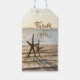 Seesterne am Sand bedanken sich für das kommende Geschenketikett.