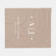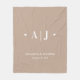 Diese Fleecedecke bietet ein modernes minimales Design mit einem Monogramm, dem Namen und dem Hochzeitstermin der Neuvermählten. Der Hintergrund ist eine helle Sandfarbe und kann in jede andere Farbe geändert werden. Das ist ein großartiges personalisiertes Geschenk für die Neuvermählten.