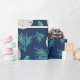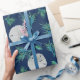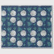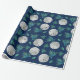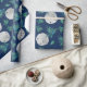 Sand Dollar und Korallenverpackungspapier auf einer Rolle. Realistische weiße Schlüsselloch und Dollars bilden ein Muster zusammen mit blau-grüner Koralle und Muscheln auf einem dunkelmarineblau blauen Hintergrund. Ideal zum Feiern eines erwachsenen Geburtstages oder zum Umhüllen von Hochzeitsgeschenken.