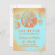 Schöne Vintage Hochzeit am Strand Save the Date Postkarten mit Sand-Dollar in orange und türkisblau Schaum Farben.