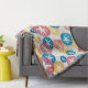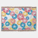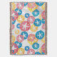 Trendy Sand Dollar Seamless Pattern in Gelb, Rot und Blau zeigt unser originelles Design von verschiedenen Größen und Farben überlappenden Sand Dollars in einem flachen grafischen Stil mit unserer Signatur Textur auf einem texturierten weißen Hintergrund.