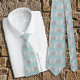 Hochzeitsmusterin Krawatte mit Sand-Dollars. Sea schaum grüne Farbe mit zwei weißen Sand Dollar zusammen, die ein Muster bilden. Die Farben sind grau, weiß und blau-grün. Das perfekte Zubehör für Hochzeitsfeiern oder Veranstaltungen mit Strandthemen.