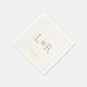 Stilvoll und elegant mit moderner Eleganz. Diese weichen Elfenbein-Servietten sind mit einigen Initialen und Namen in einem zeitgenössischen Set aus beigen Sand-Schriftart und floralen Typografie-Elementen ausgestattet.