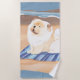 Ein hübsches Design für die Dekoration im Sommer. Kleine Chow bekommt eine Bräune am Strand mit einem glücklichen Gesichtsausdruck.