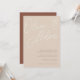 Eine schöne typografische Hochzeitseinladung mit Ihren Namen in überdimensionalen Schriftzeichen an der Spitze, in Ton auf Tontönen für einen Wasserzeichen-Effekt. Personalisieren Sie Ihre Hochzeitsdetails in klassischen Serifenschriften, die rechts unten ausgerichtet sind. Unsere Sand-Farbtöne sind eine elegante Mischung aus Erdtönen, mit heller Creme und Terracotta-Tonbuchstaben auf sanftem beigen Hintergrund.