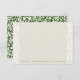 Eine einfache, feminine Schreibtischkarte mit Blumendetails in Weiß mit sanftem Grün und Waldgrün.