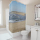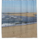 Hübscher sandiger Strand und Ozeanwellen in Provincetown auf Cape Cod. Rennen-Punkt-Leuchtturm kann im Abstand gesehen werden.
