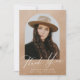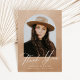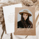 Eleganter Abschluss Dankeschön-Karte mit dem Foto des Absolventen in einem Bogen-Rahmen mit Sand Aquarell Hintergrund. "Danke" wird in einer weißen, modernen Kalligraphie-Skript mit dem Namen, der Schule und dem Abitur angezeigt, wie unten gezeigt. Auf der Rückseite des Foto Abschluss Dankeschön-Karte gibt es Platz für Ihre getippte oder handgeschriebene Nachricht.