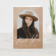Eleganter Abschluss Dankeschön-Karte mit dem Foto des Absolventen in einem Bogen-Rahmen mit einem sandbeigen Aquarellhintergrund. "Danke" wird in einer weißen, modernen Kalligraphie-Skript mit dem Namen, der Schule und dem Abitur angezeigt, wie unten gezeigt. Die Innenseite des Foto Abschluss Dankeschön-Karte bietet Platz für Ihre getippte oder handgeschriebene Nachricht. Auf der Rückseite der Karte befindet sich ein sandfarbener Hintergrund.
