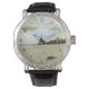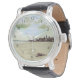 Uhr, Klassische Damenuhr mit schwarzen Lederarmband