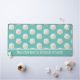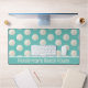 Schreibtischmatte mit dem Thema Strand, in Robin's Eiblau gemacht, mit einem Muster von Sand Dollar. In einem Textbereich, der sich ganz unten befindet, kann der Text individuell angepasst werden. Ideal für Hütte- oder Strandgeschäfte.