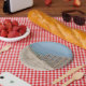 Hübscher Strand mit Düne und dem schützenden Fechten - zusammenpassende Papierservietten sind auch verfügbar