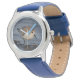 Kinderuhr aus Edelstahl mit blauem Lederarmband