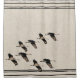 Die schönen Sandhill Kran-Vögel, die auf einen Imitat-Leinengewebehintergrund fliegen, sind auf diesem Streifen-Duschvorhang.