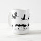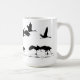 Wunderbare Collage der digitalen Silhouettekunst von der Fotografie, um sich zu entfernen der laufenden fliegenden Sandhill Kran-Vögel und, ist auf dieser Tasse.