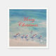 Weihnachtssandpfeifer Holiday Party Papier Servietten. Weihnachtsvögel an der Küste in Weihnachtsmannmützen Weihnachtsfeier Vorräte. Fun Sandpipers fröleln am Strand in Weihnachtsmannmützen Holiday Lieferungen von Servietten in verschiedenen Größen und Größen.