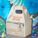 Sandschneemann am Strand mit fröhlicher Weihnachtsbotschaft