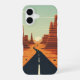 Eine minimalistische Retro-Straße, die durch sonnenverwitterten Wüstenstein führt.