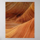 Design zeigt ein Foto einer interessanten Felsformation in der Wüstenlandschaft der südwestlichen USA. Es sieht aus wie ein abstraktes Kunstwerk, aber die Wellen sind komplett aus orangefarbenem Sandstein, der über tausende Jahre geologischer Erosion entstanden ist.