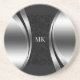 Schwarzer Damast mit metallisch silberfarbenem Rahmen und geometrisch gewellten Streifen. Benutzerdefiniertes Monogramm.