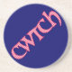 Ein runder Sandstein-Untersetzer mit dem walisischen Wort "cwtch", was in keltischen Schriften "kuddle" oder "hug" bedeutet, mit einem rot-weißen Gingham-Karo-Muster und einem dunkelblauen Hintergrund. (Sie können die Hintergrundfarbe ganz einfach ändern, wenn Sie möchten. Verwenden Sie die Schaltfläche "Bearbeiten".)