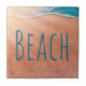Sandstrand Uferlinie blaue Ozeanwellen Keramik Fliesen. Küstenmeere nautische Thema Zuhause Geschenke. Schöne, tropisch Sommerferien Szene Küche Backsplash Dekor. Chic, trendig, modern, elegant, cooles Reisedesign. Typografie kann individuell auf Ihre Bedürfnisse angepasst werden. Bildrecht Marg Seregelyi Fotografie.
