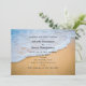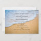 Eine Hochzeitseinladung mit einem Foto eines goldbraunen Sandstrandes mit weißer, schäumender Brandung und blauem Wasser.
