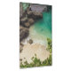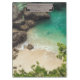 Sandstrand mit grünen Bäumen, Felsen und Ozean Klemmbrett