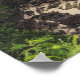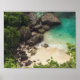 Sandstrand mit grünen Bäumen, Felsen und Ozean Poster