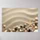 Sandstrand mit Muscheln und Seestern. Urlaubskonzept. Top-Ansicht