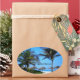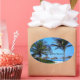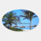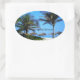 Sandstrand mit Palmen und Oval mit Meerblick Ovaler Aufkleber