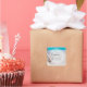 Vielen Dank für Ihre Bestellung Business Aufkleber mit einem wunderschönen Foto. Tropisch blaues Wasser und schäumendes Surfen im Hintergrund. Eine Sammlung von Muscheln und Stielen Set auf einem weißen Sandstrand.