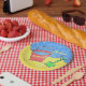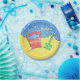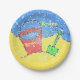 Ein sommerliches Mosaik-Bild von einem Pagel und Schaufel im Sand am Strand. Ideal für Party oder Geschenk eines Kindes. In den Farben Blau, Gelb, Rot und Grün.Individualisieren Sie, wenn Sie möchten.