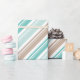 Ein klassisches Konfektionspapier aus Zuckerrohr mit Sand- und Meeresfarben, das eine sandige Bräune, ein tropisches Meeresblau und ein Schaumgrün mit weißem Zuckerrohr aufweist.