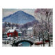 "Sandvika" ist ein evokatives Gemälde, das die ruhige Schönheit des norwegischen Dorfes Sandvika feststellt. Dieses Werk veranschaulicht die Fähigkeit, natürliche Landschaften mit einer charakteristischen impressionistischen Touch darzustellen. Das Gemälde besticht durch eine friedliche Flussszene mit einem kleinen Dorf inmitten schneebedeckter Hügel und Bäume. Der Fluss, wahrscheinlich Sandvikselva, ist von zentraler Bedeutung für die Komposition, die den Himmel und die umliegende Landschaft widerspiegelt. Die Verwendung einer coolen Farbpalette, die von Weiß, Blues und Grau dominiert wird, vermittelt die knusprige, kalte Atmosphäre eines Wintertages. Die Pinselstriche sind locker und fließend, was das Licht auf Schnee und Wasser einfängt. Die Gebäude des Dorfes werden mit weichen, diffusen Konturen geschmückt und harmonisch in die umliegende Landschaft eingebettet. Das Ganze ist eine von Ruhe und stille Schönheit, die typisch für die Fähigkeit ist, Alltagsszenen in bezaubernde Kunstwerke zu verwandeln. "Sandvika" ist ein Beweis für die Vielseitigkeit und die tiefe Wertschätzung der vielfältigen Landschaften, die in Norwegen begegnen. Sie spiegelt die Beherrschung der vorübergehenden Auswirkungen von Licht und Wetter wider und die Fähigkeit, die ruhige, kontemplative Stimmung einer Winterlandschaft zu vermitteln.