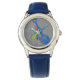 Kinderuhr aus Edelstahl mit blauem Lederarmband