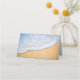 Platzkarte mit einem Foto eines goldbraunen Sandstrandes mit weißer, schäumender Brandung.
